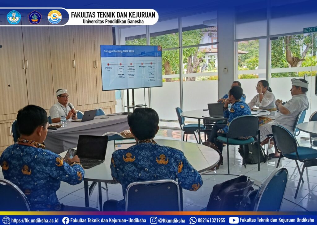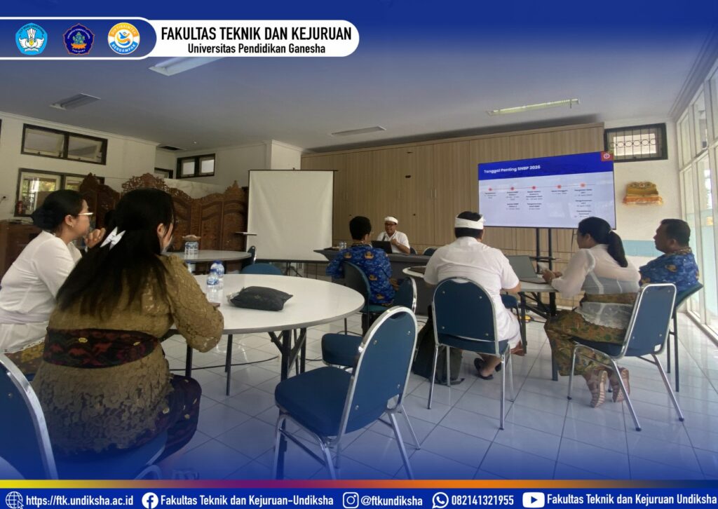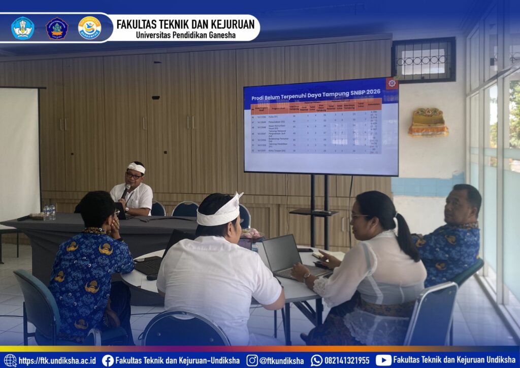 Singaraja, 2 April 2026 – Fakultas Teknik dan Kejuruan (FTK) Universitas Pendidikan Ganesha (Undiksha) menunjukkan komitmen serius dalam mengawal proses seleksi mahasiswa baru tahun akademik 2026. Bertempat di Ruang Tata Hidang, Gedung B, pimpinan fakultas menggelar rapat koordinasi penting guna membahas tindak lanjut penerimaan mahasiswa baru melalui jalur SMBP. Pertemuan yang dimulai pada pukul 14.00 WITA ini dihadiri oleh jajaran pimpinan inti, mulai dari Wakil Dekan I, II, dan III, para Ketua Jurusan, Koordinator Program Studi, hingga Ketua Tim Gugus Sosialisasi di lingkungan FTK.