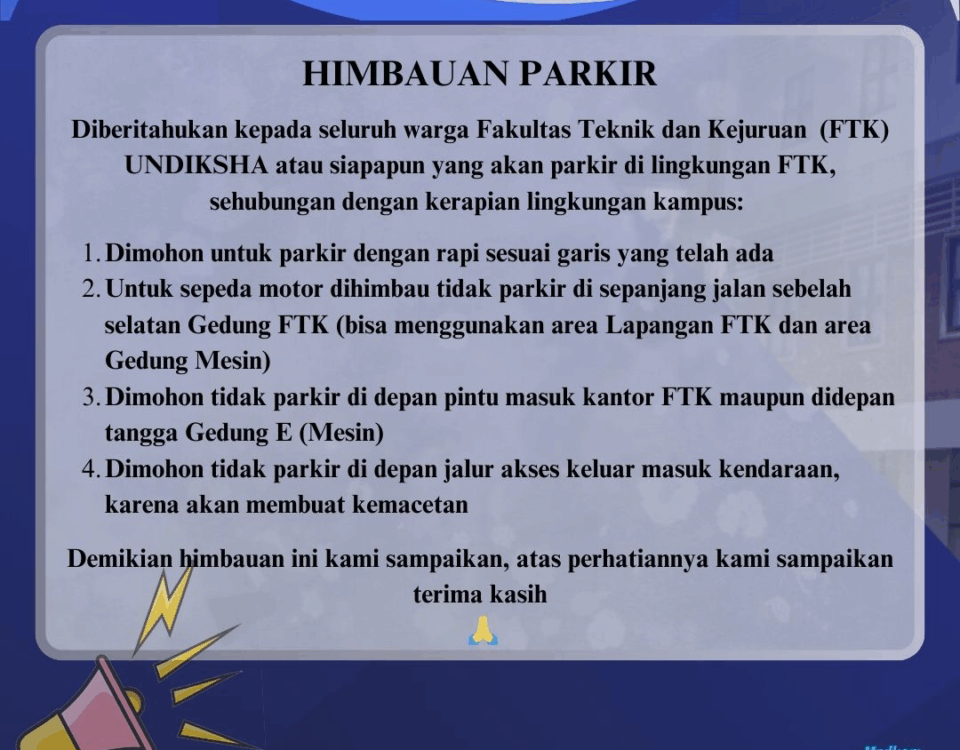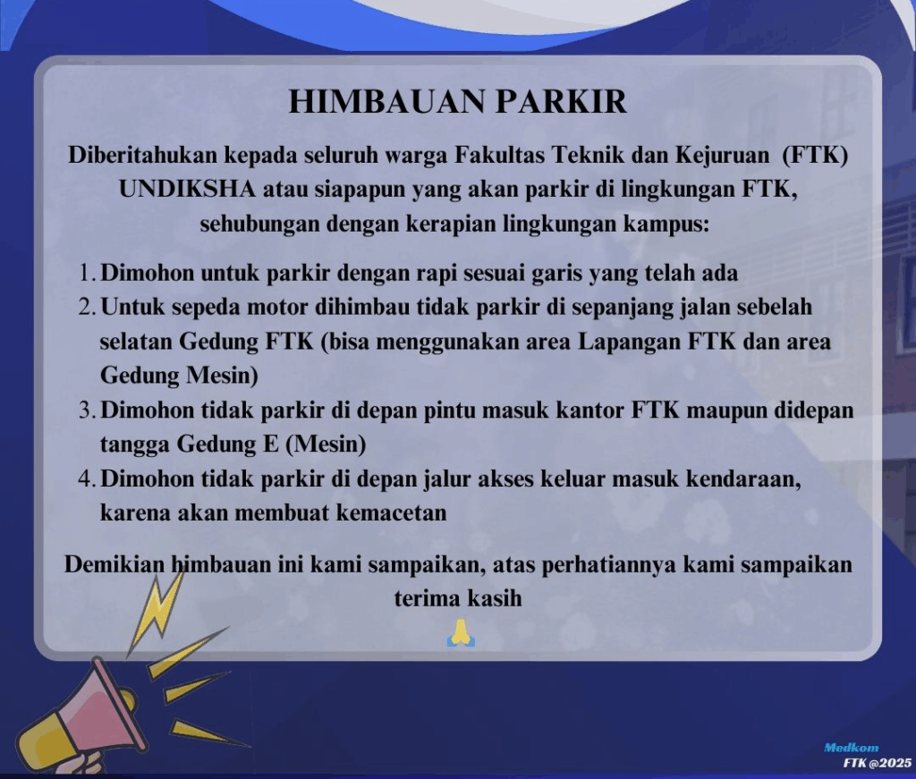 Kami segenap civitas akademika Fakultas Teknik dan Kejuruan Undiksha mengucapkan selamat dan sukses atas raihan lomba nasional pengembangan game tradisional, Semoga dimasa yang akan datang terus mengukir prestasi-prestasi yang gemilang dan dapat memicu untuk mahasiswa lain untuk bisa berprestasi.