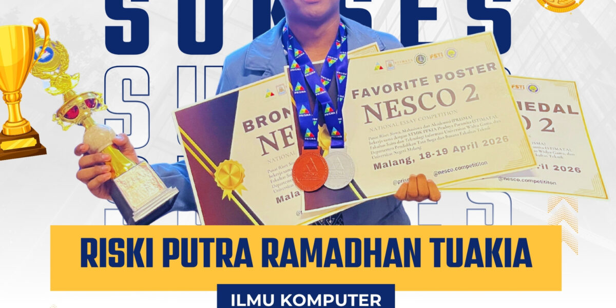 SINGARAJA – Fakultas Teknik dan Kejuruan (FTK) Universitas Pendidikan Ganesha (Undiksha) kembali mengukuhkan eksistensinya sebagai gudang inovator muda berprestasi. Mahasiswa Program Studi Ilmu Komputer, Riski Putra Ramadhan Tuakia, sukses meraih capaian gemilang dalam ajang National Essay Competition (NESCO 2) yang digelar di Universitas Negeri Malang pada 18-19 April 2026.