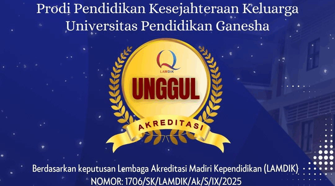 Segenap civitas akademika Fakultas Teknik dan Kejuruan UNDIKSHA mengucapkan Selamat dan Sukses kepada Program Studi Pendidikan Kesejahteraan Keluarga (PKK) atas capaian UNGGUL dari LEMBAGA AKREDITASI MANDIRI KEPENDIDIKAN (LAMDIK) NOMOR : 1706/SK/LAMDIK/Ak/S/IX/2025 berlaku pada tanggal 22 September 2025 sampai dengan tanggal 21 September 2030.