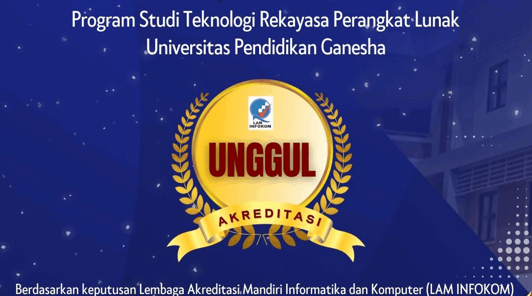 Segenap civitas akademika Fakultas Teknik dan Kejuruan UNDIKSHA mengucapkan Selamat dan Sukses kepada Program Studi D4 Teknologi Rekayasa Perangkat Lunak (TRPL) atas capaian Terakreditasi UNGGUL dari Lembaga Akreditasi Mandiri Informatika dan Komputer (LAM INFOKOM) NOMOR: 212/SK/LAM-INFOKOM/Ak/STr/VIII/2025, berlaku tanggal 17 Agustus 2025 sampai dengan tanggal 17 Agustus 2030.