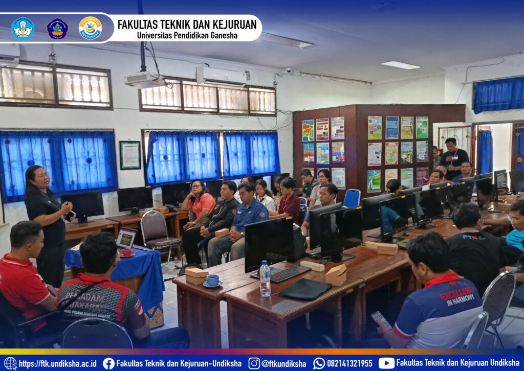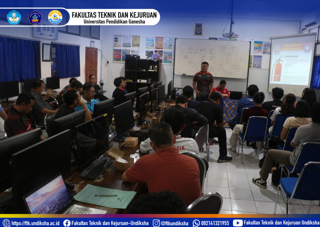 Rangkaian kegiatan diawali dengan sesi pemaparan materi di Lab LCI FTK. Narasumber dari Damkar Kabupaten Buleleng memberikan edukasi komprehensif mengenai teori dasar api, teknik evakuasi mandiri, hingga pengenalan berbagai jenis Alat Pemadam Api Ringan (APAR) berdasarkan sumber apinya.